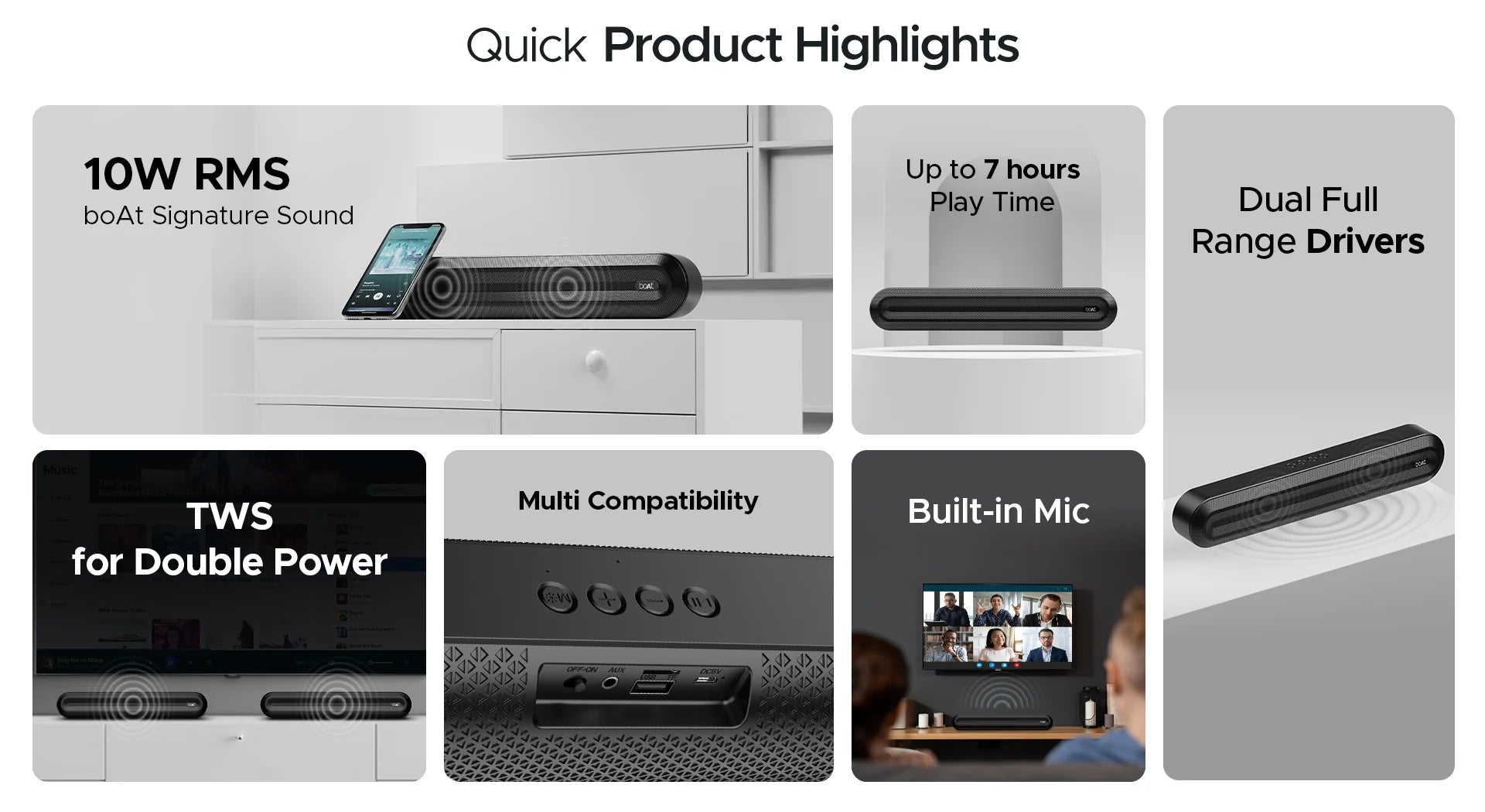 BoAt Aavante Bar Aspire | Bluetooth Soundbar with 10W RMS Signature Sound | 2.0 Channel with 7 Hours Playback, TWS Feature