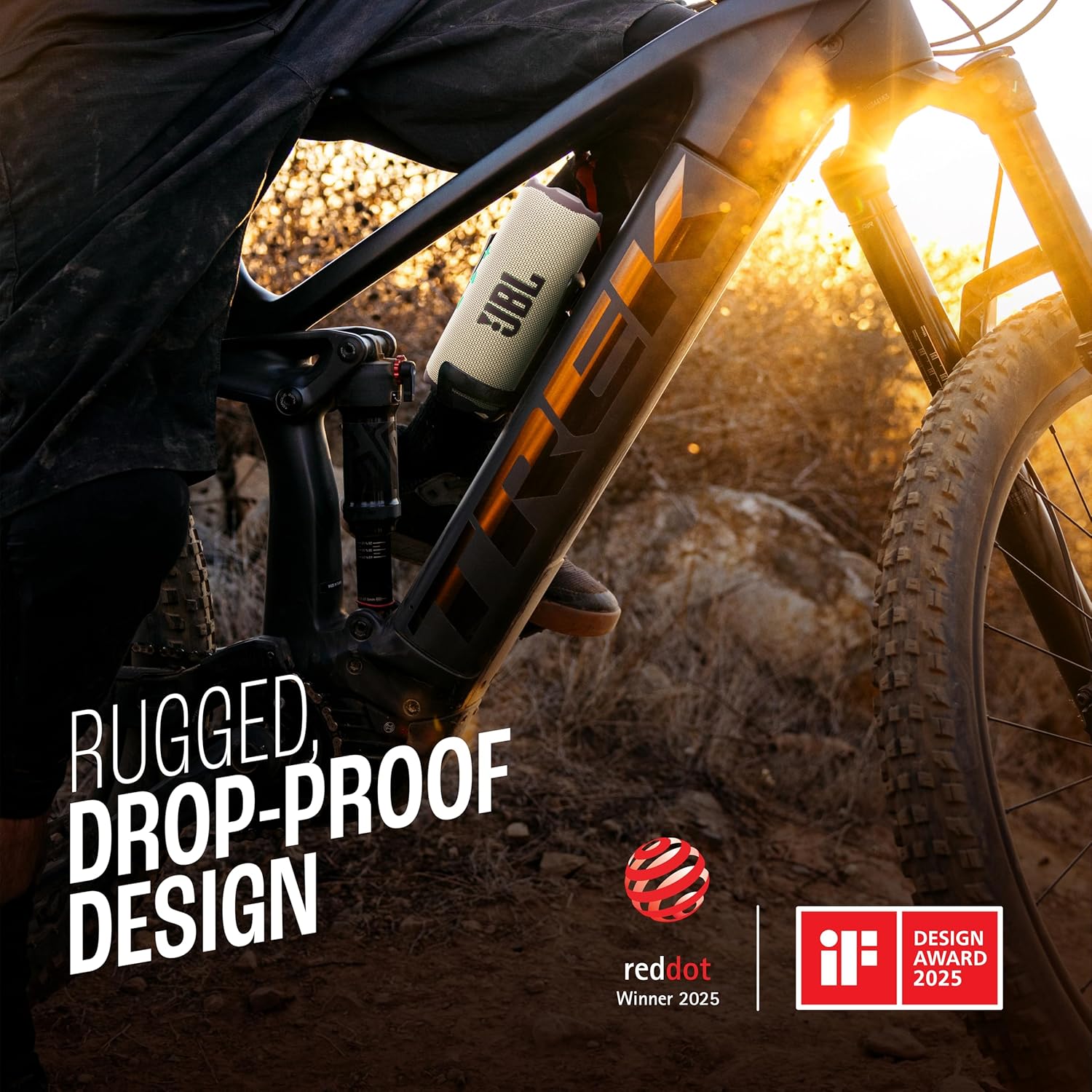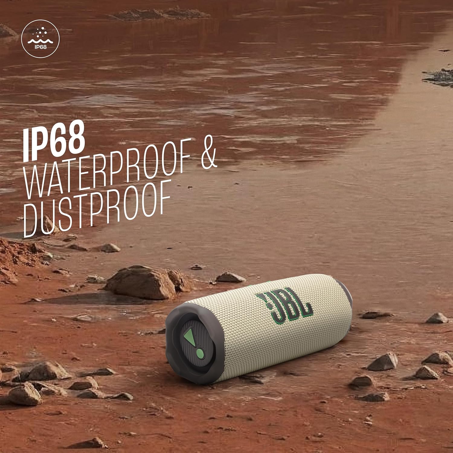 Have you ever dropped your speaker, had it roll down a dusty hill and land in a lake? No? Well, believe it or not, it happens. So, we built the JBL Flip 7 to be as life-proof as they come. On top of our legendary waterproof and dust-proof design (an industry-leading IP68, BTW), we've also made sure that if you drop it from 1-meter onto your concrete floor, it'll keep kicking. But please, don't go throwing your speaker around just to flex on your friends. Throw parties instead. *Based on lab test conditions for submersion in up to 1.5 meters of freshwater for up to 30 minutes.