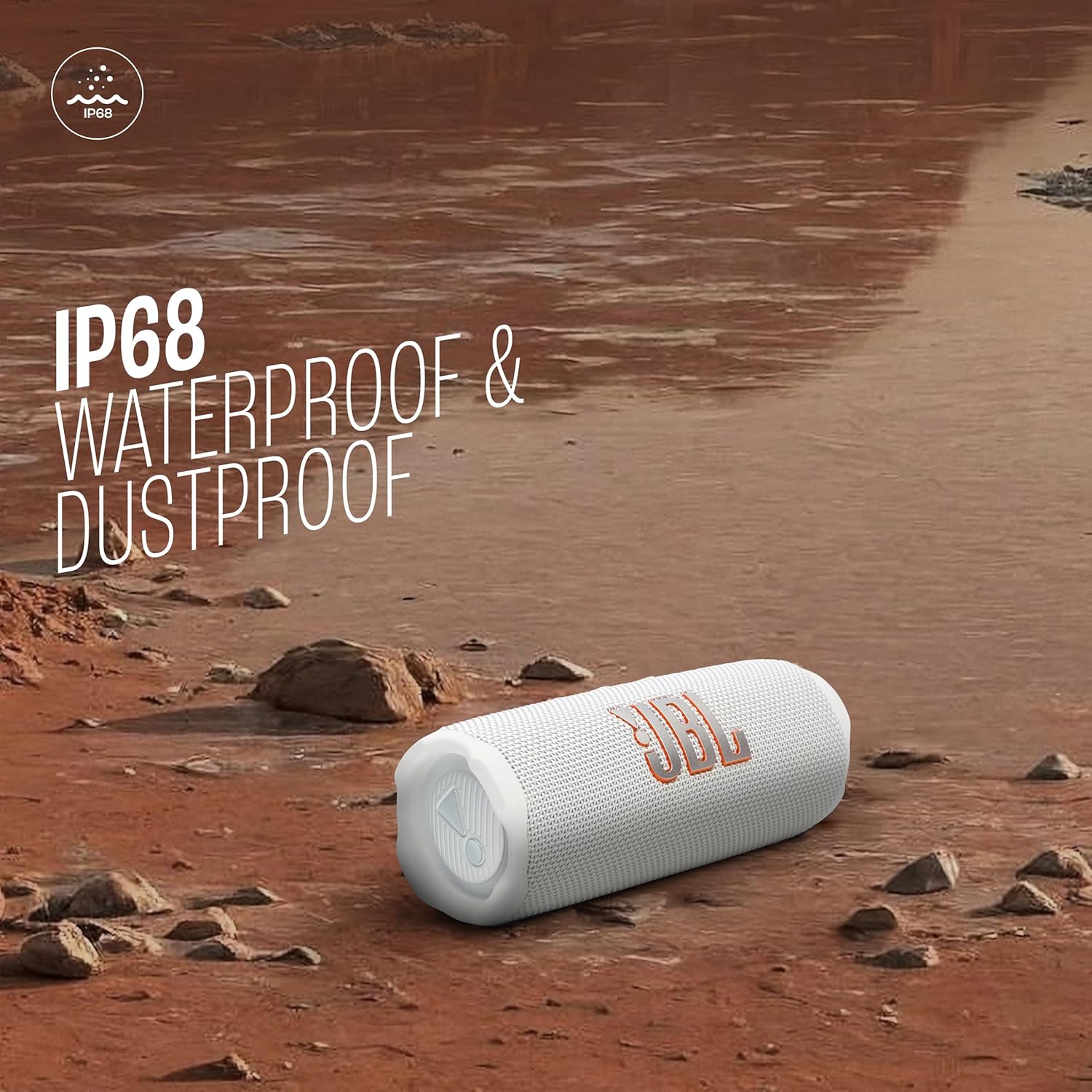 Have you ever dropped your speaker, had it roll down a dusty hill and land in a lake? No? Well, believe it or not, it happens. So, we built the JBL Flip 7 to be as life-proof as they come. On top of our legendary waterproof and dust-proof design (an industry-leading IP68, BTW), we've also made sure that if you drop it from 1-meter onto your concrete floor, it'll keep kicking. But please, don't go throwing your speaker around just to flex on your friends. Throw parties instead. *Based on lab test conditions for submersion in up to 1.5 meters of freshwater for up to 30 minutes.